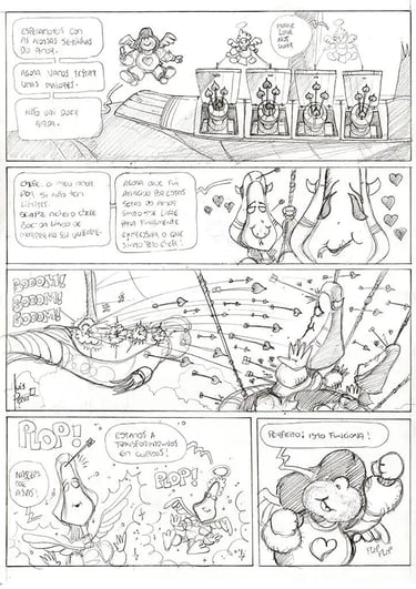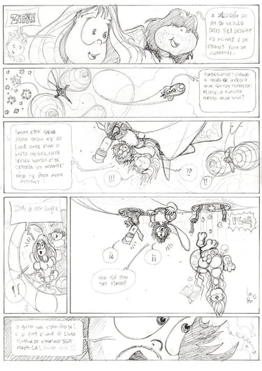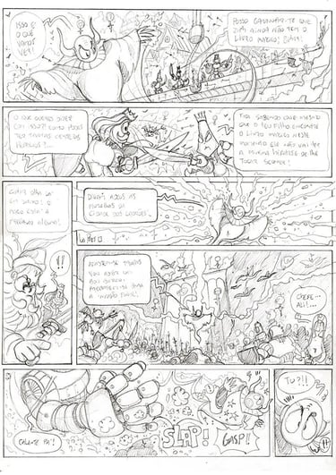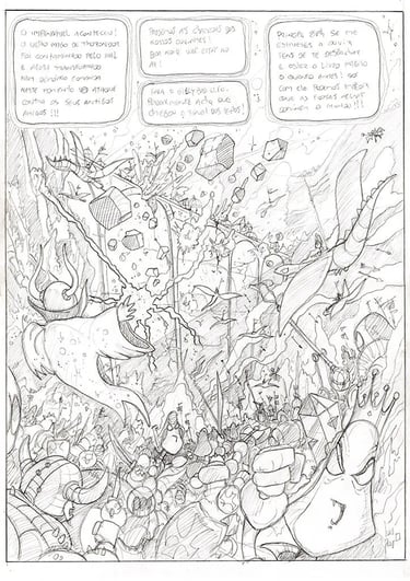 Originally, I wanted to create a 48 page graphic-novel to print as a typical European hardcover book but, instead, when I stopped and completed the comics, I already had 180 pages of illustrations done in pencil! The ones you see on this page.